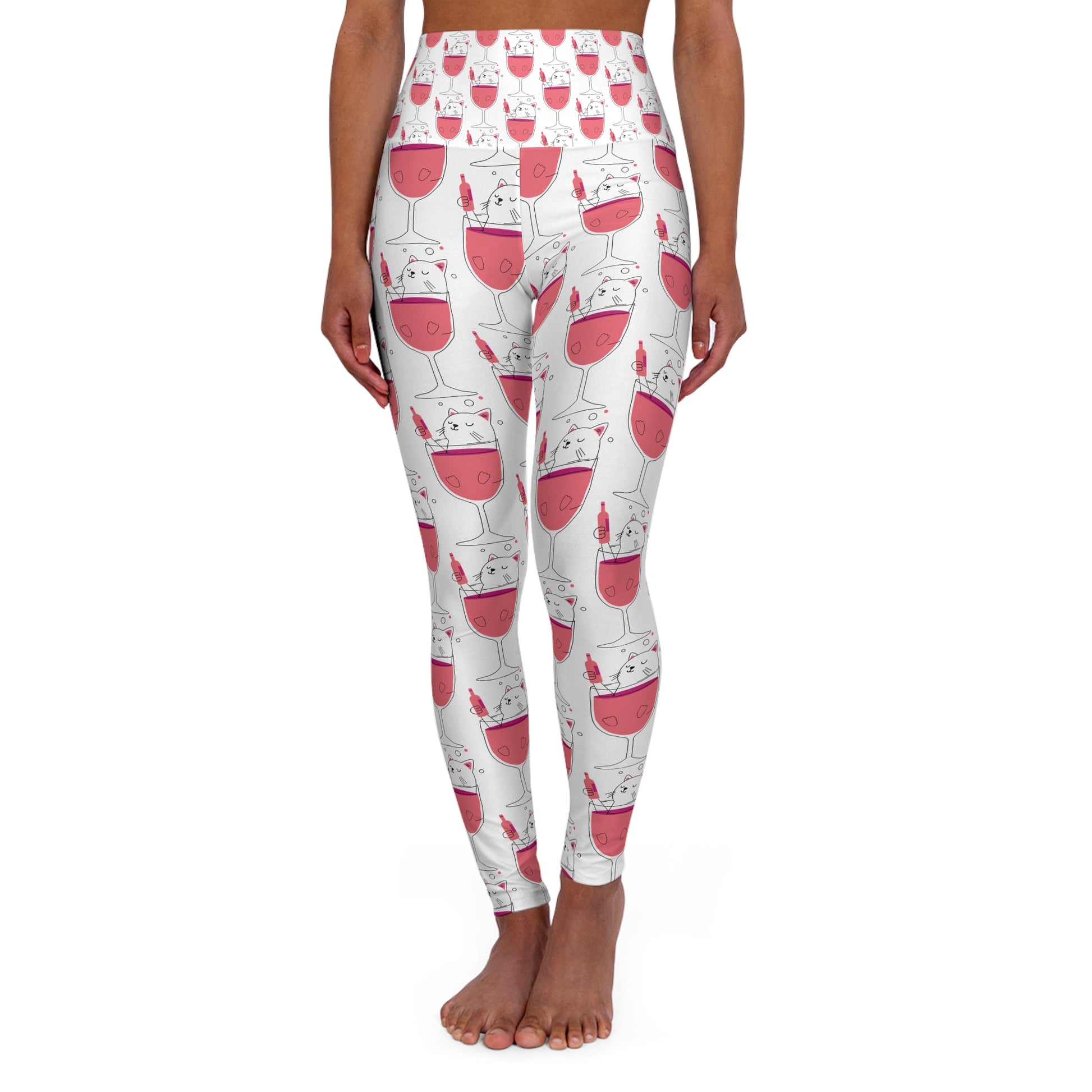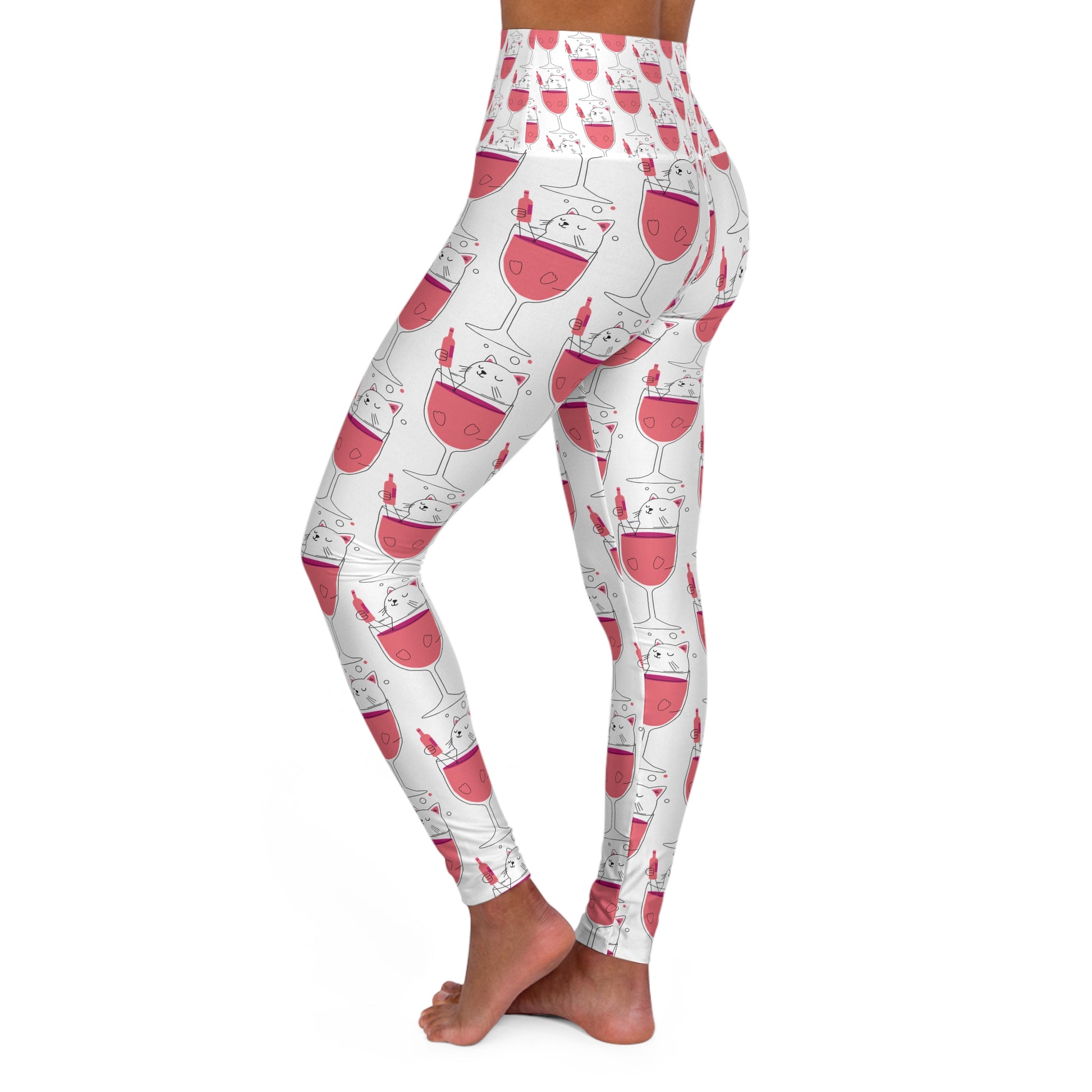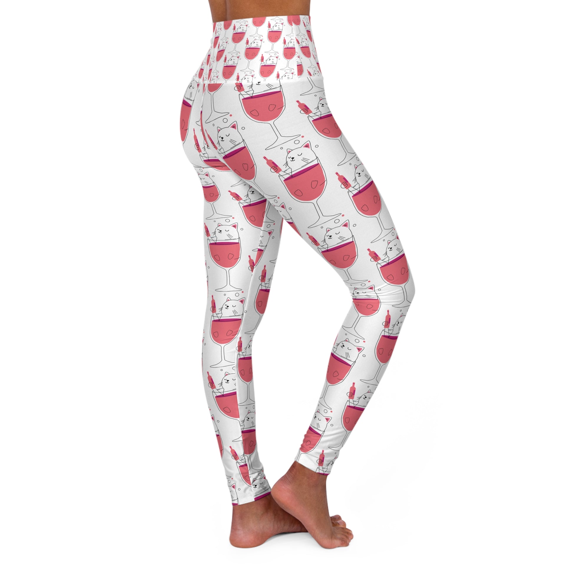 Cat_Wine illustration (pair with I'm a better lady because of my cats tee) High Waisted Yoga Leggings (AOP)