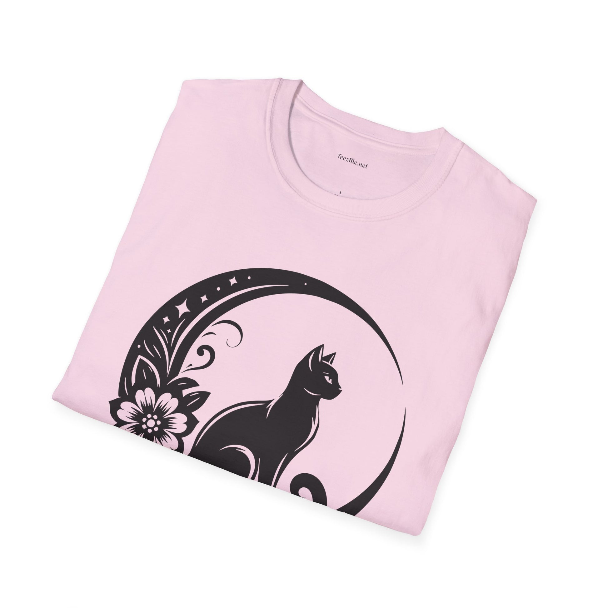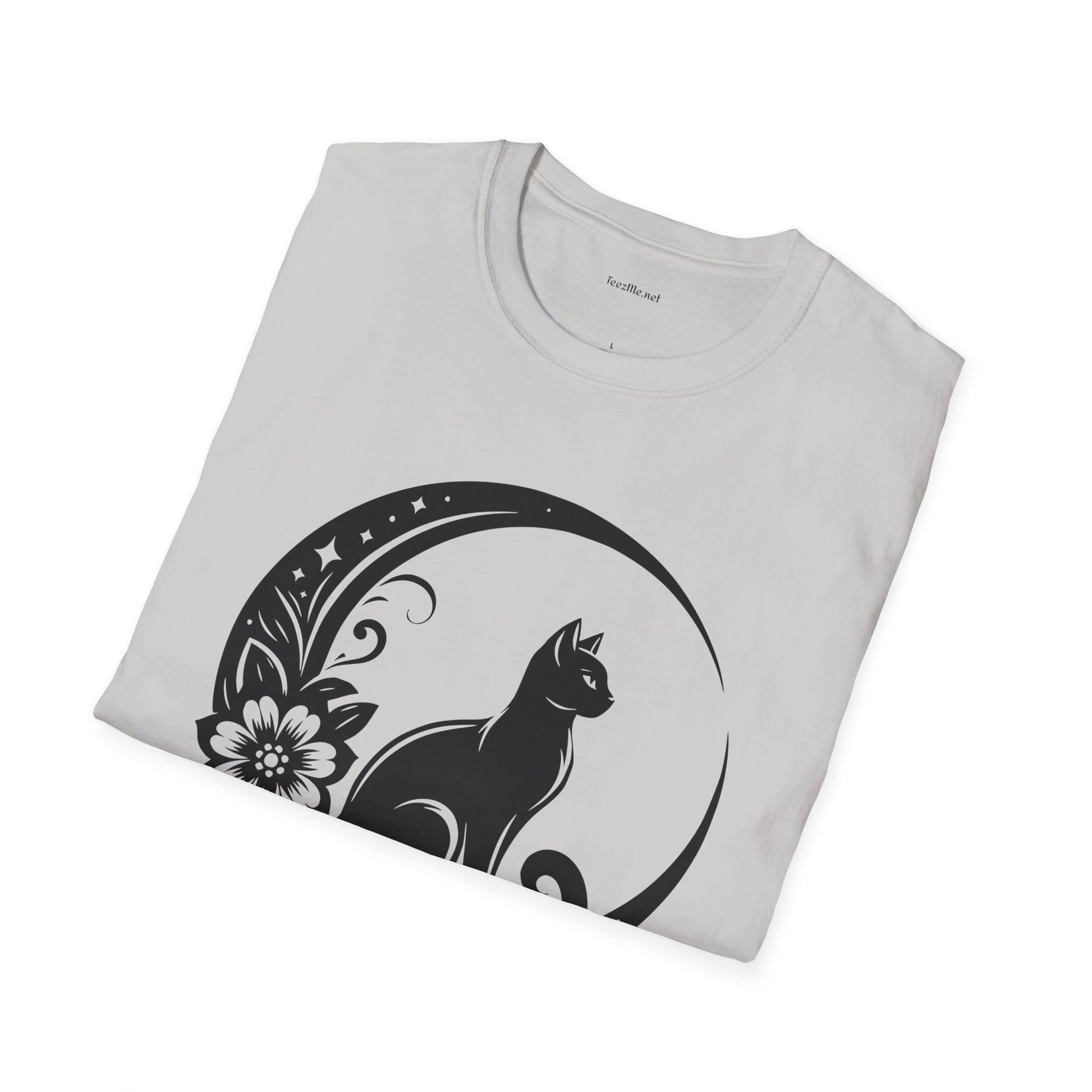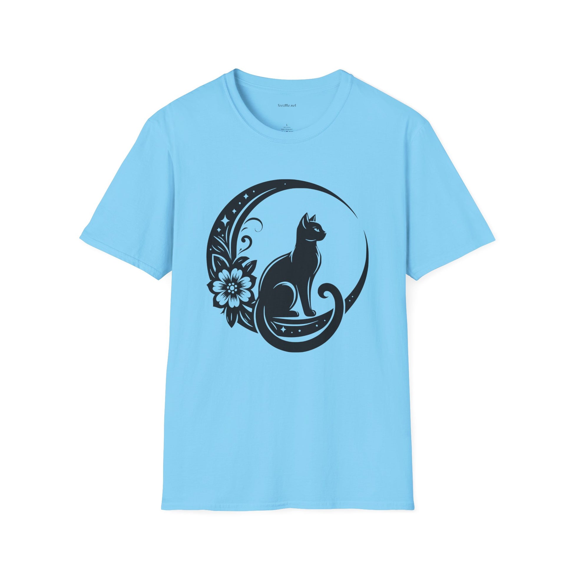 Crescent Moon Cat - Unisex Softstyle T-Shirt 100% Cotton Graphic