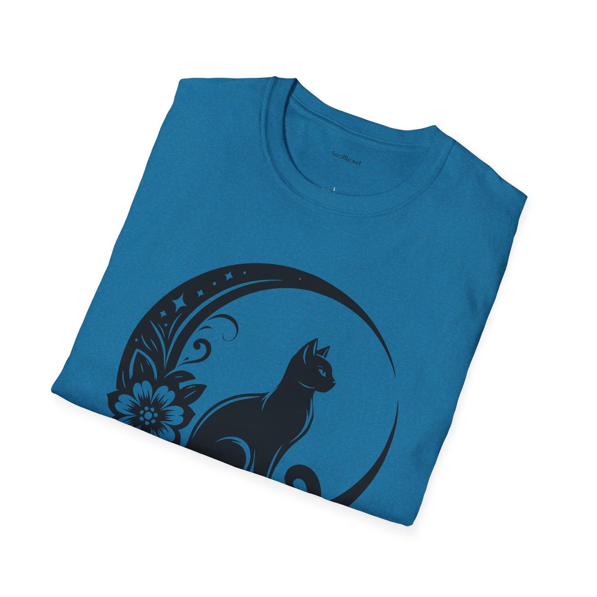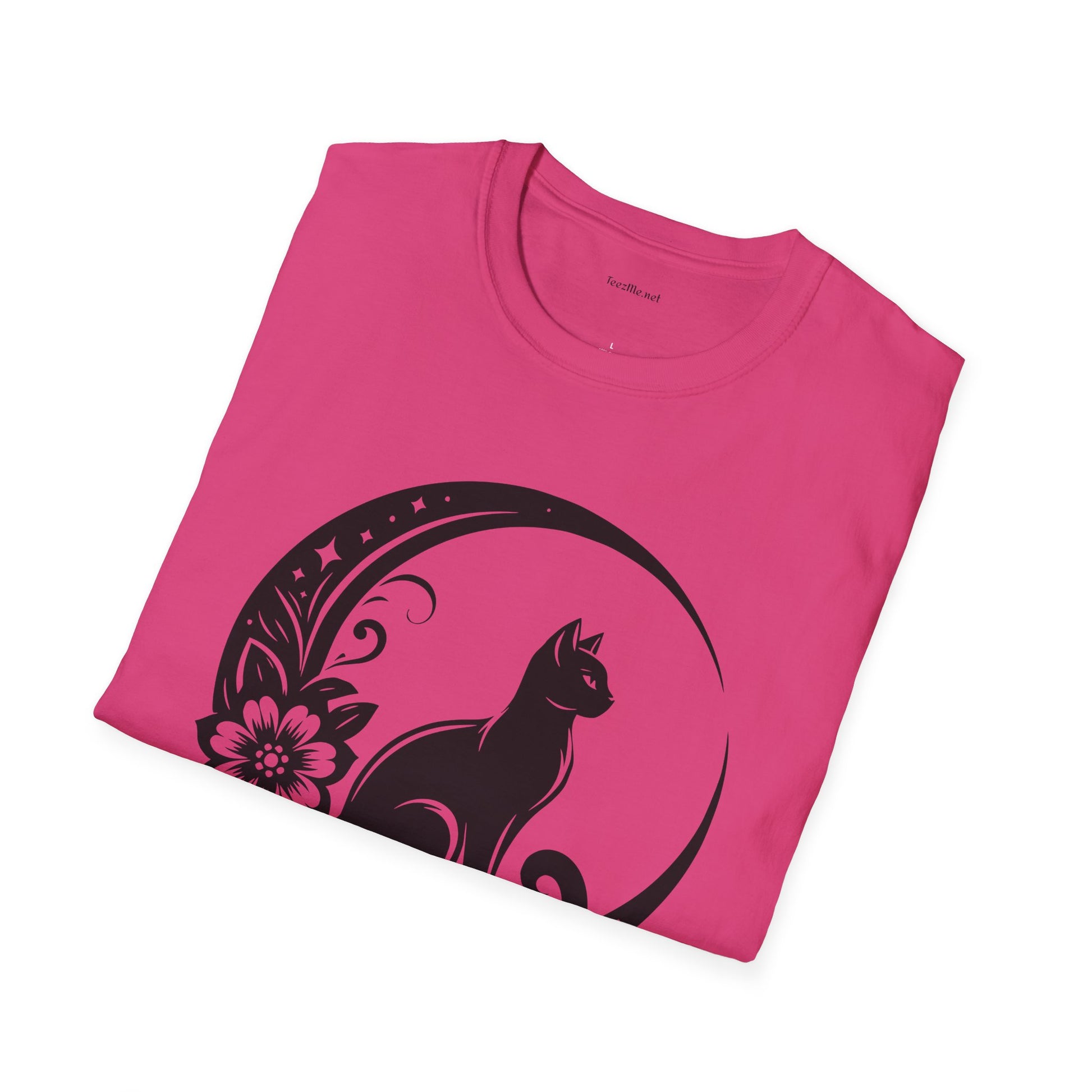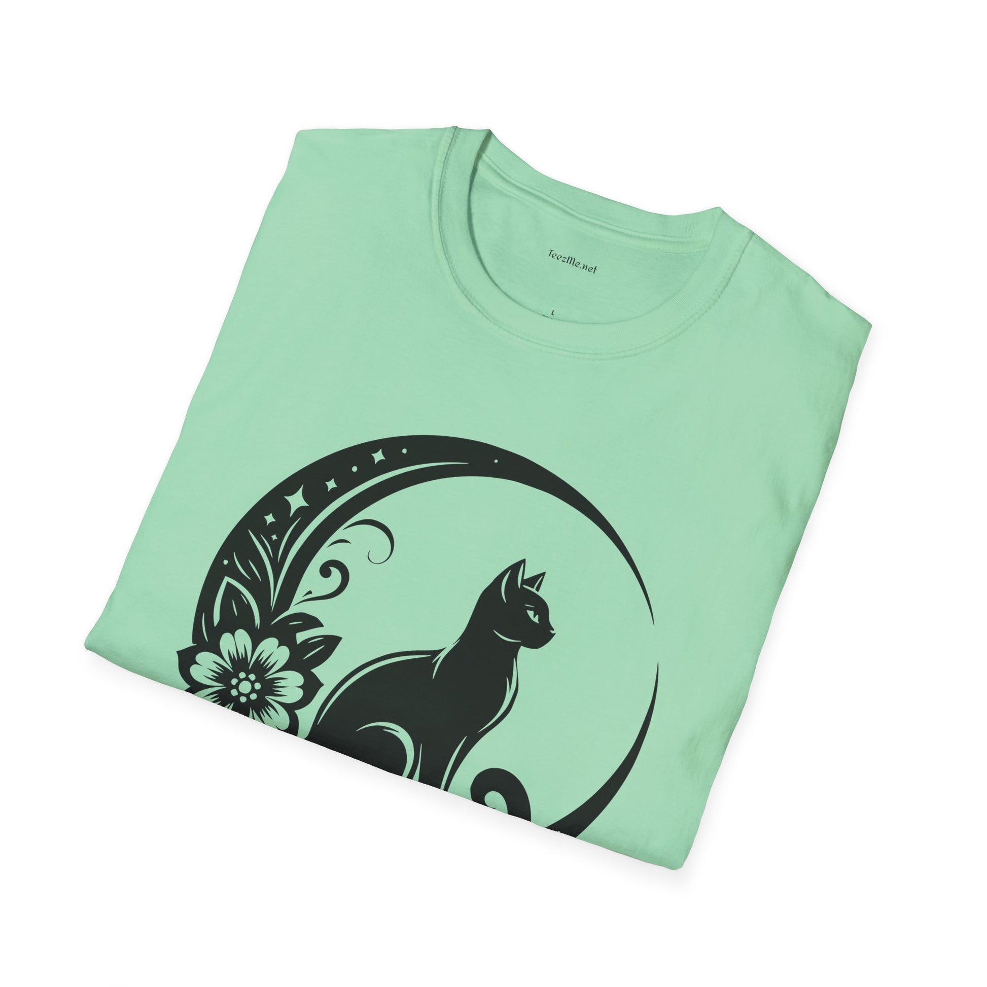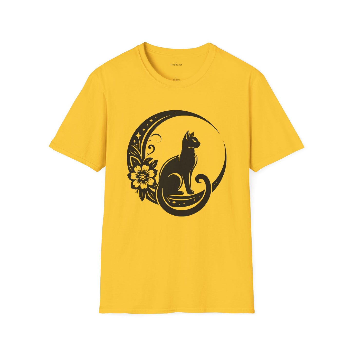 Crescent Moon Cat - Unisex Softstyle T-Shirt 100% Cotton Graphic