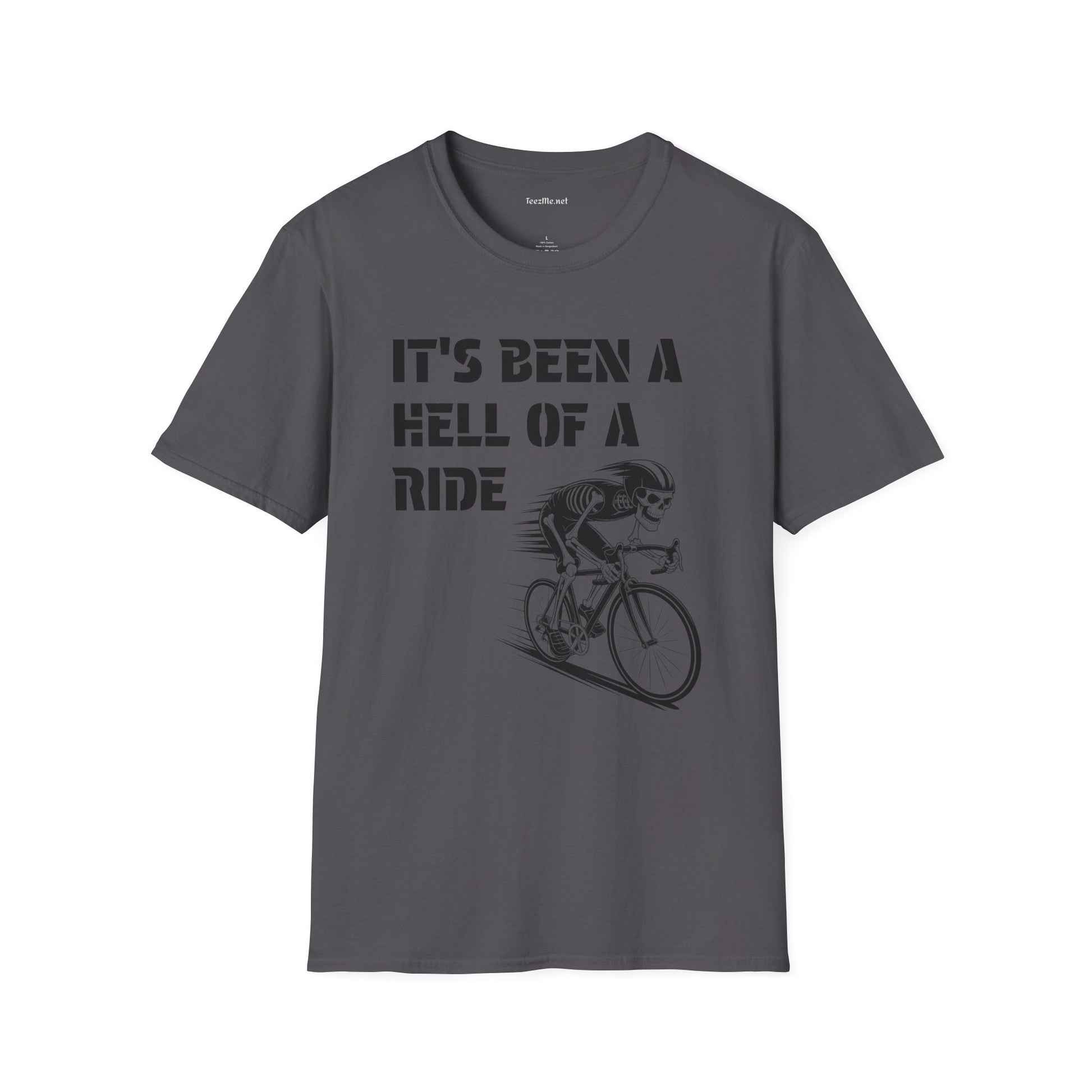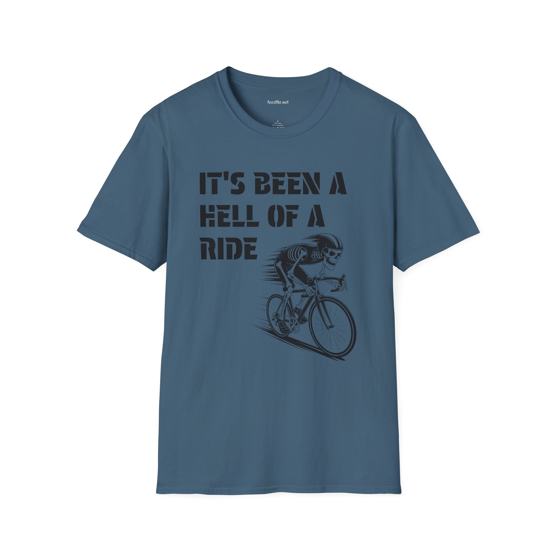 It's been a Hell of a Ride (skeleton on bicycle) Unisex Softstyle T-Shirt 100% Cotton Graphic