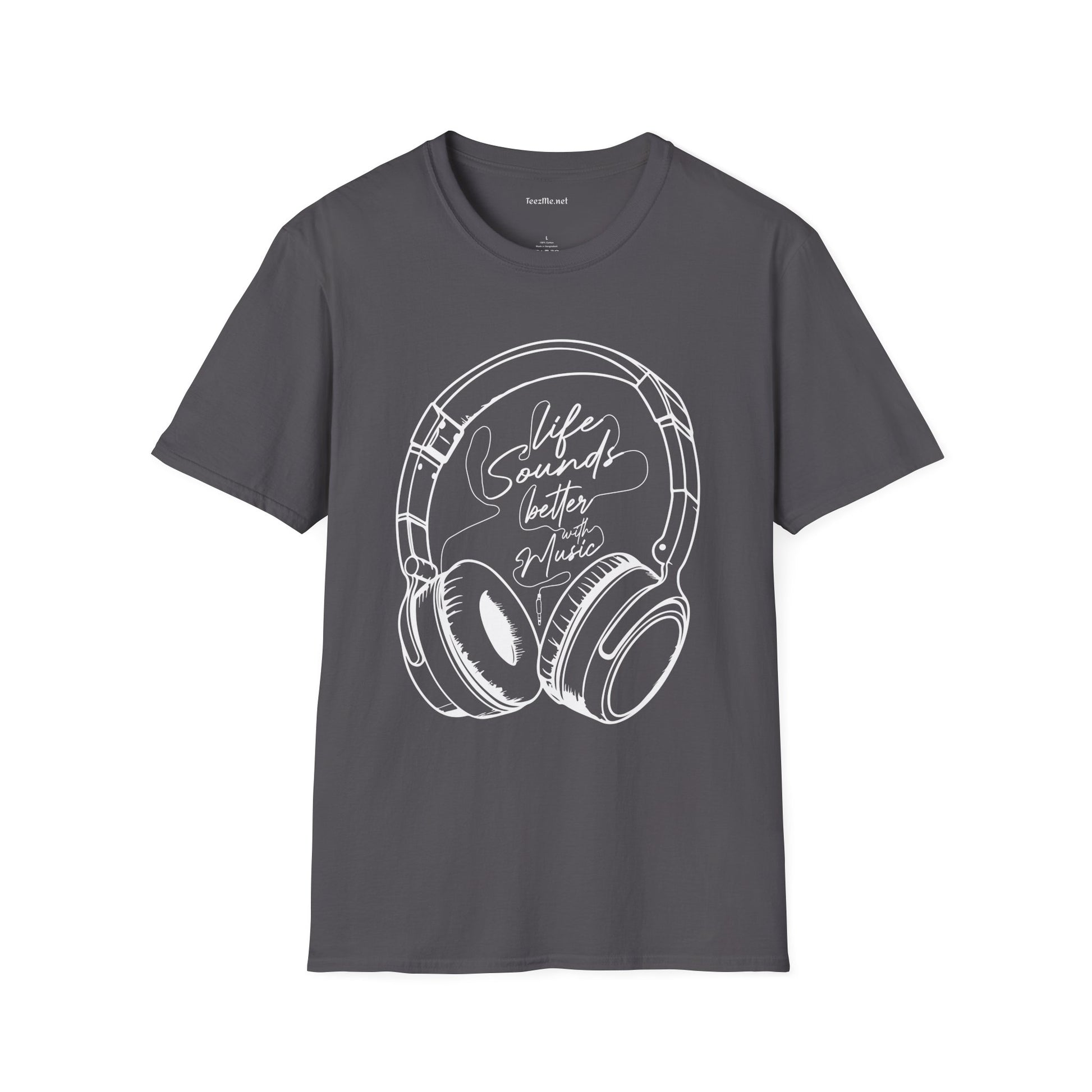 Life Sounds Better with Music (white) Unisex Softstyle T-Shirt 100% Cotton Graphic