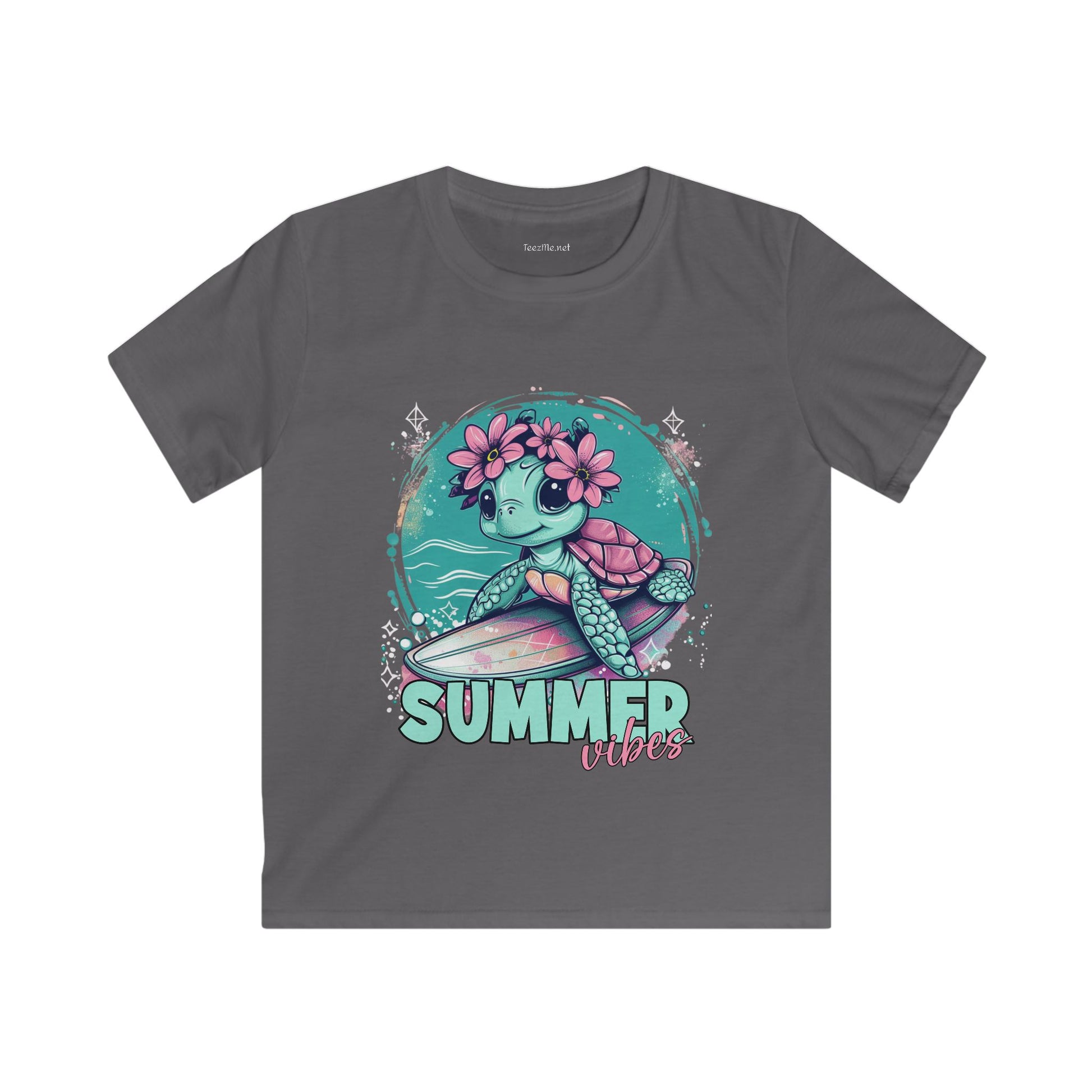 Summer Vibes Surfing Turtle Softstyle Tee Children