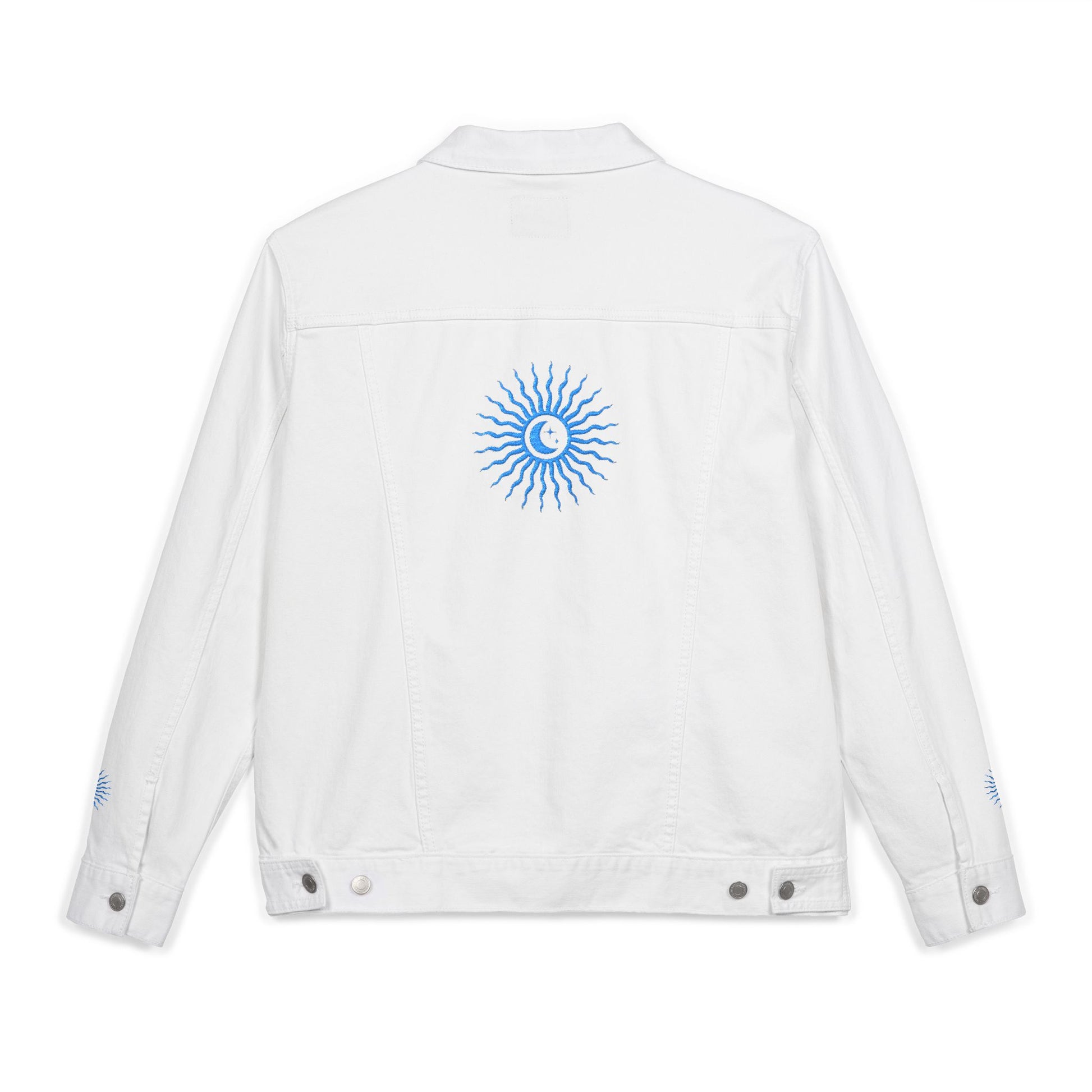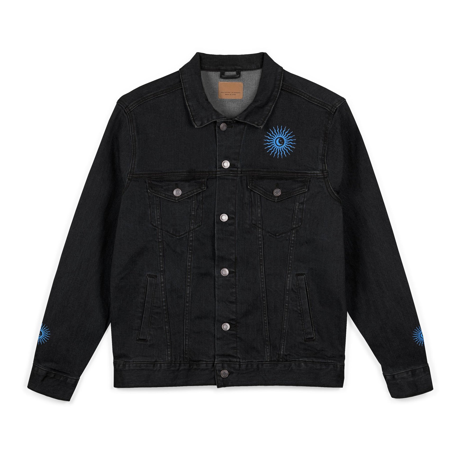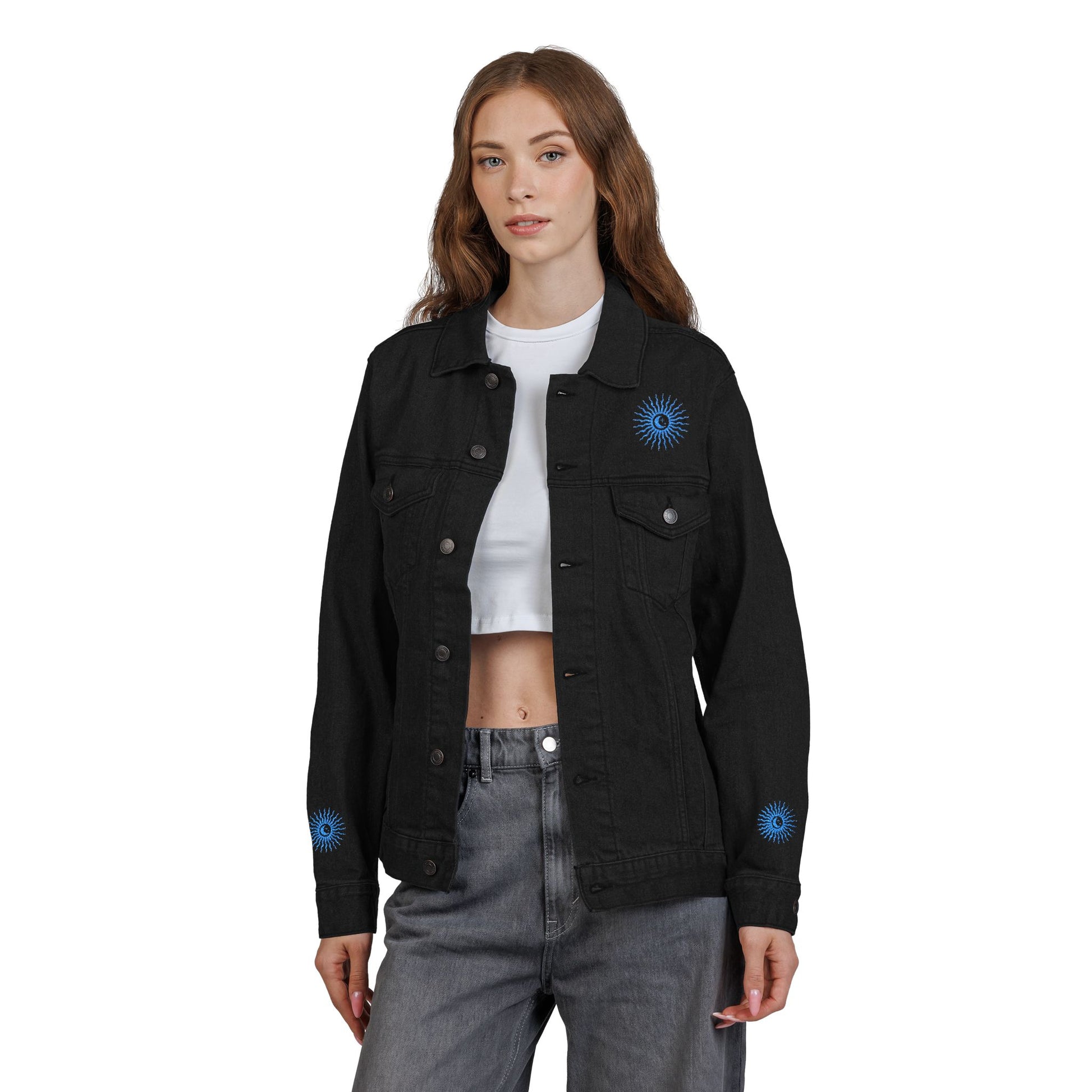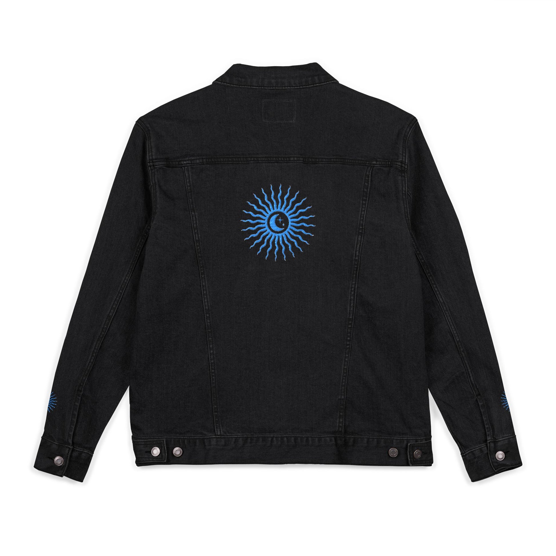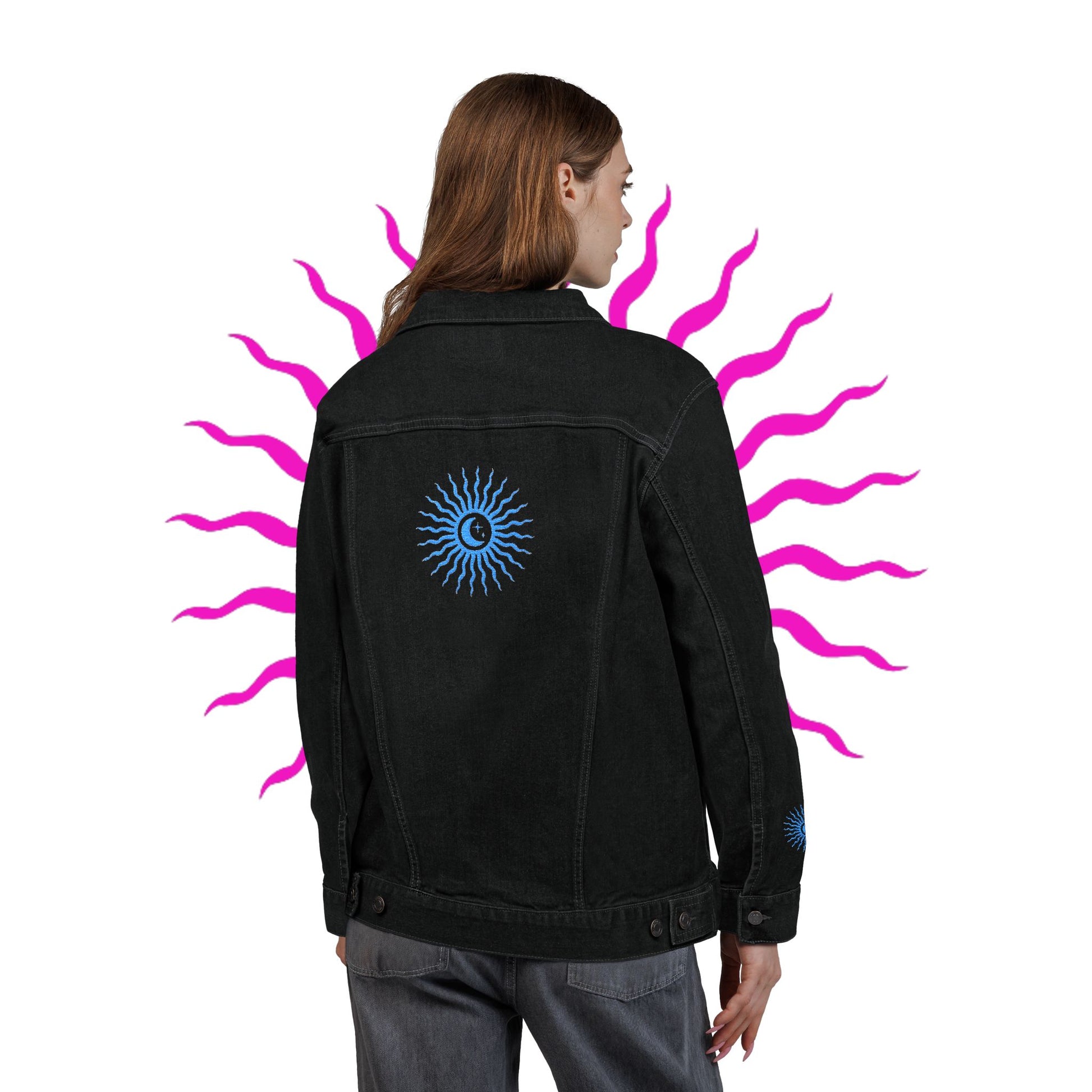 Sun and Moon Turquoise Unisex Denim Jacket (Embroidery)
